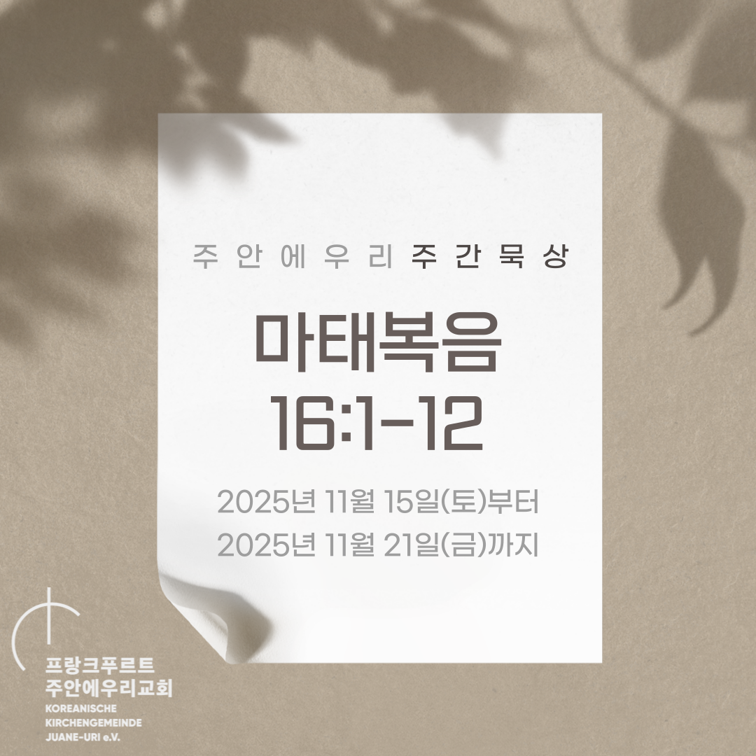 11/15(토)부터 11/21(금)까지 주간묵상본문은