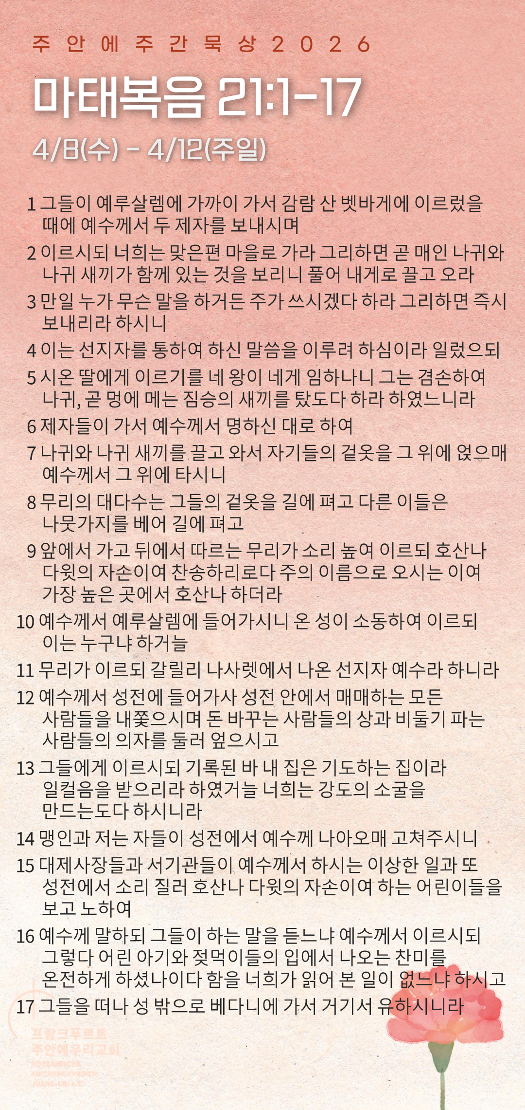4/8(수)-4/12(주일) 주간묵상본문은