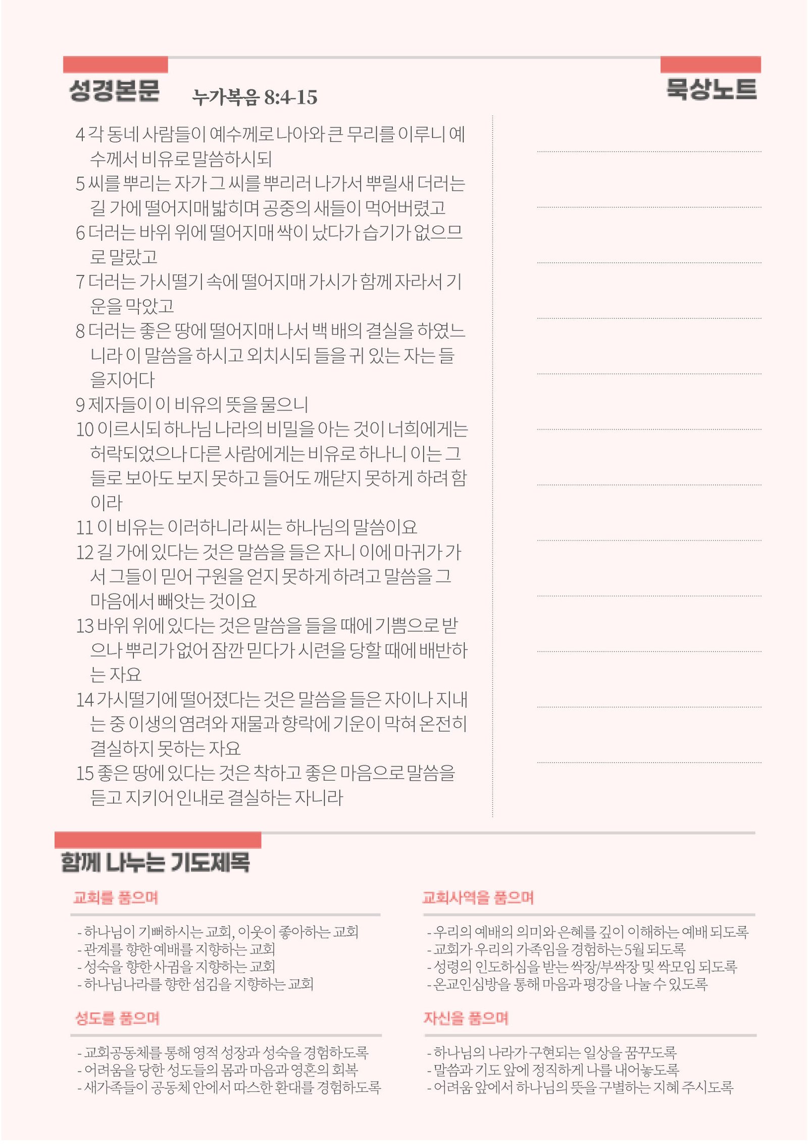 * 향후 교회일정