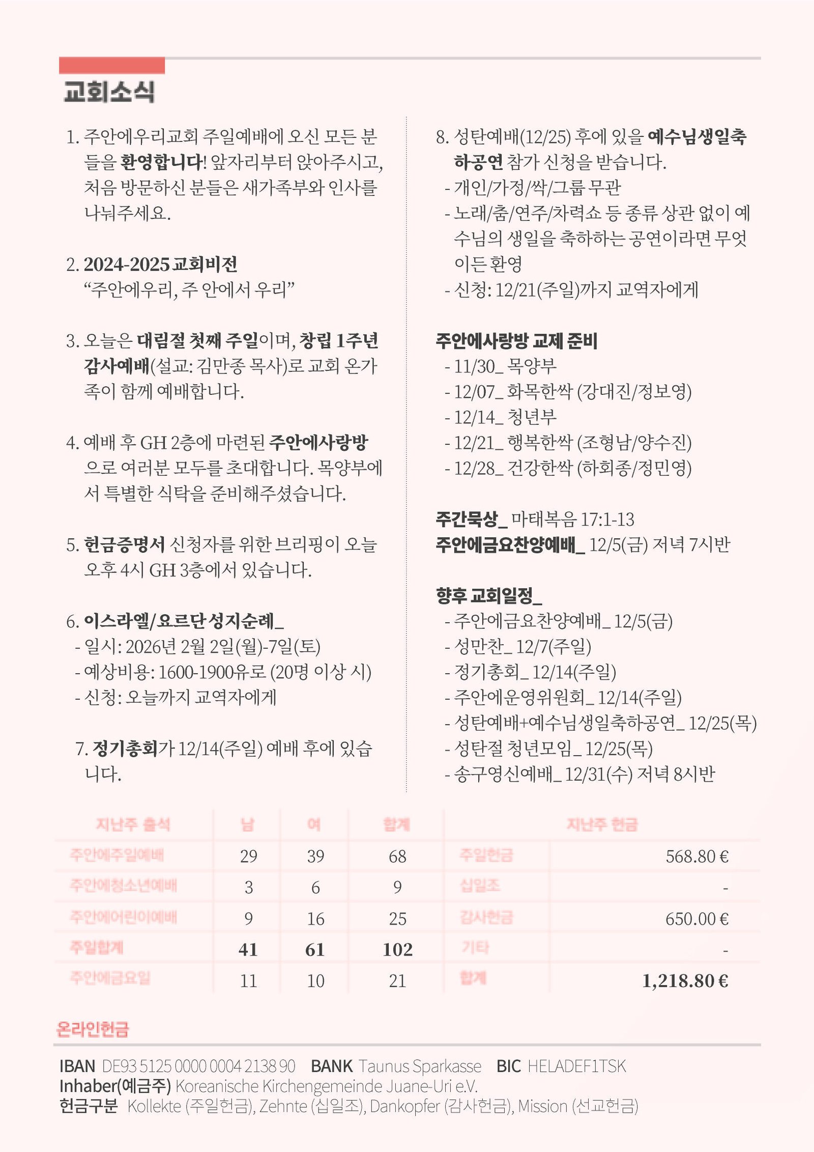 7. 정기총회가 12/14(주일) 예배 후에 있습니다.