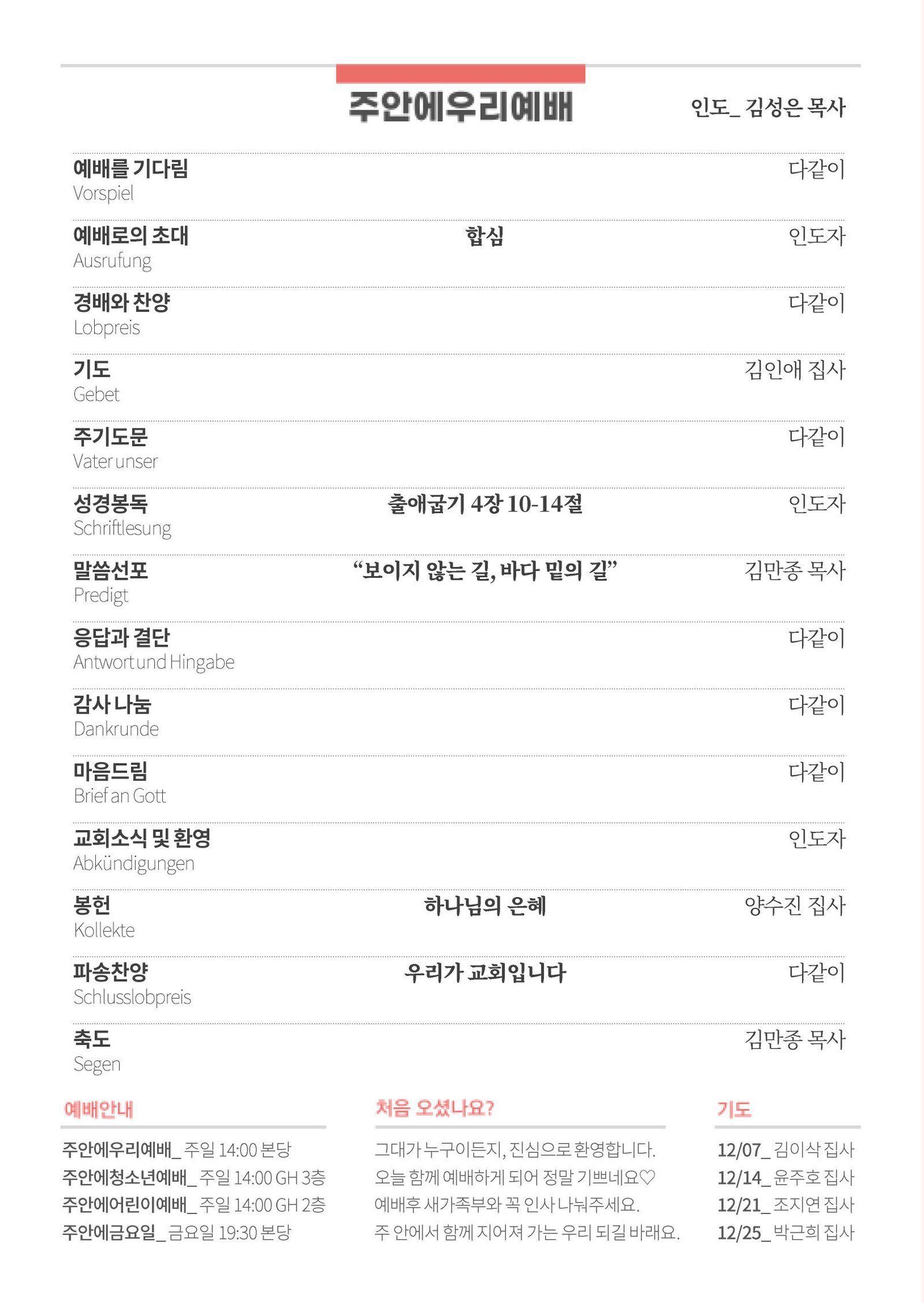 - 주안에운영위원회_ 12/14(주일)
