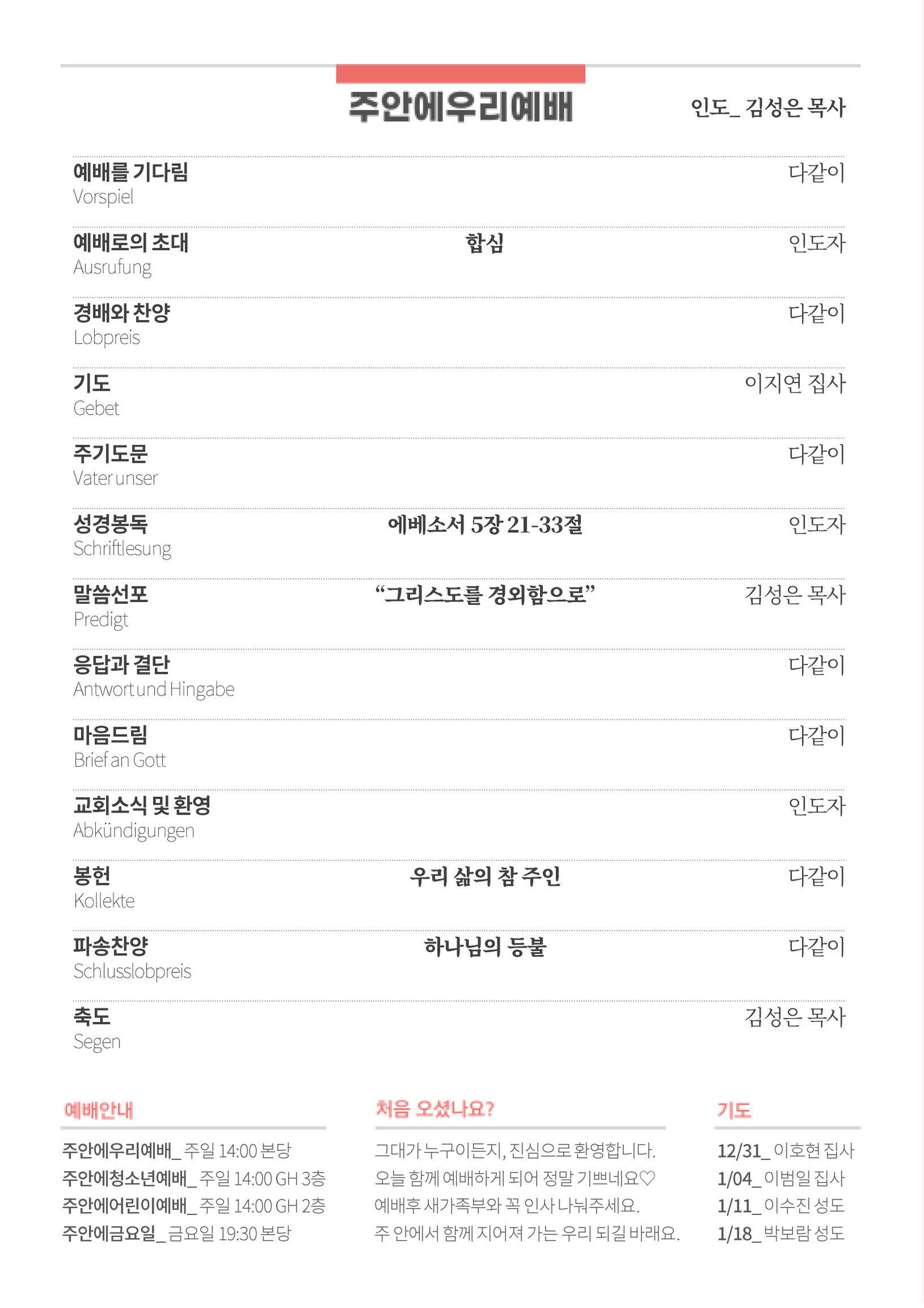 - 신년예배_ 1/4(주일)