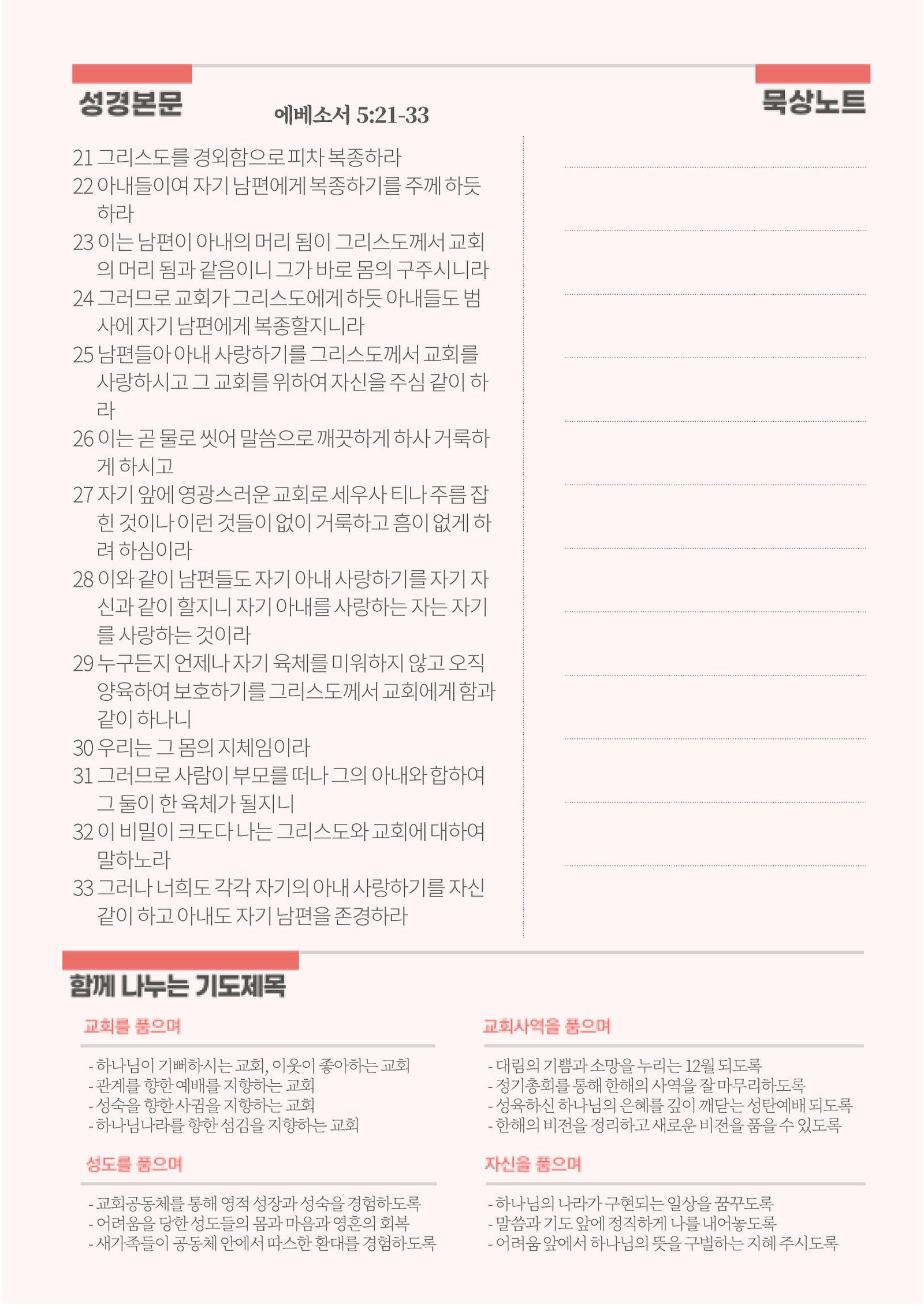- 비치된 2026년 기도제목 카드를 이용하여 가정별로 2026년에 함께 품을 기도의 제목들을 적어오시기 바랍니다.