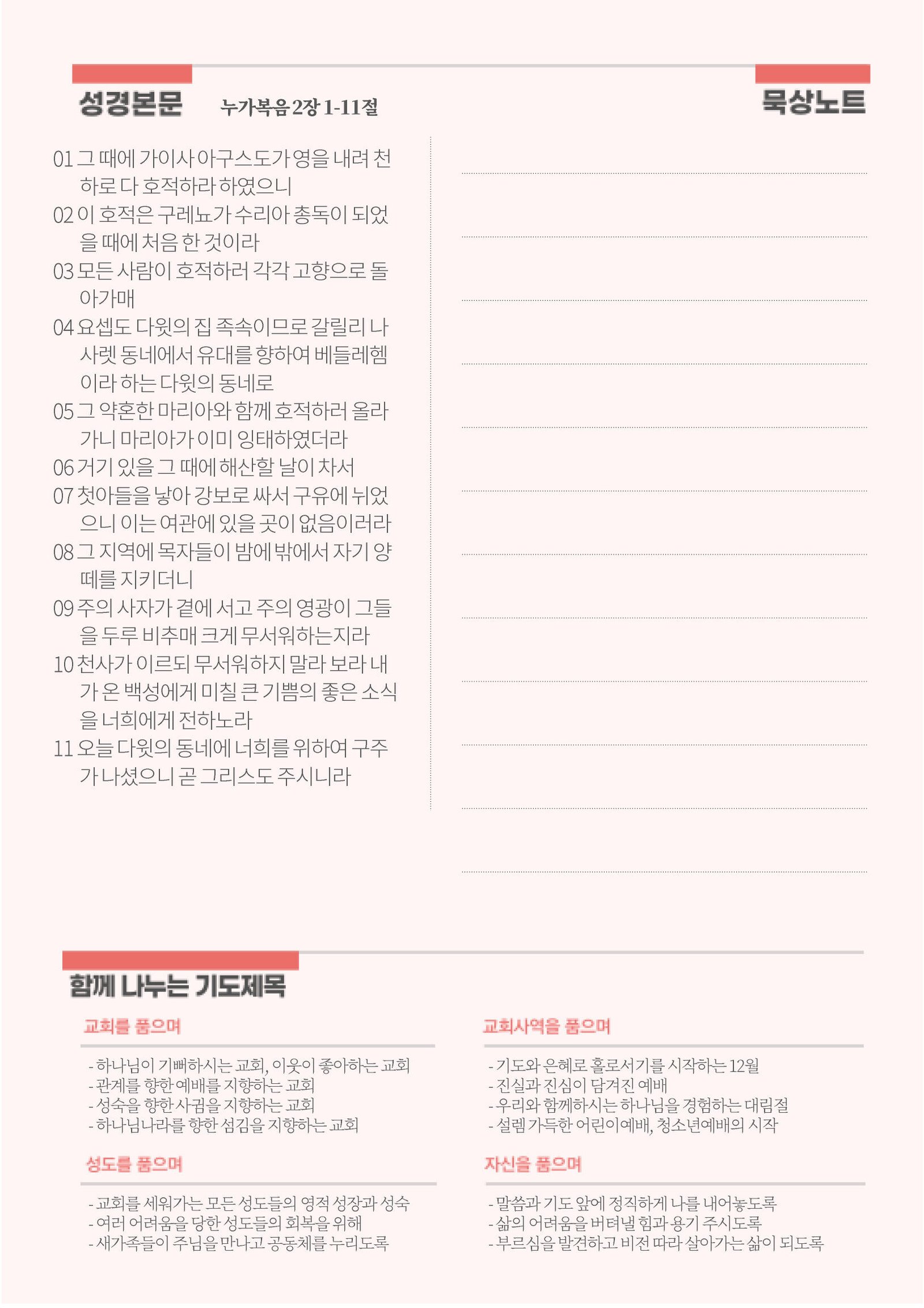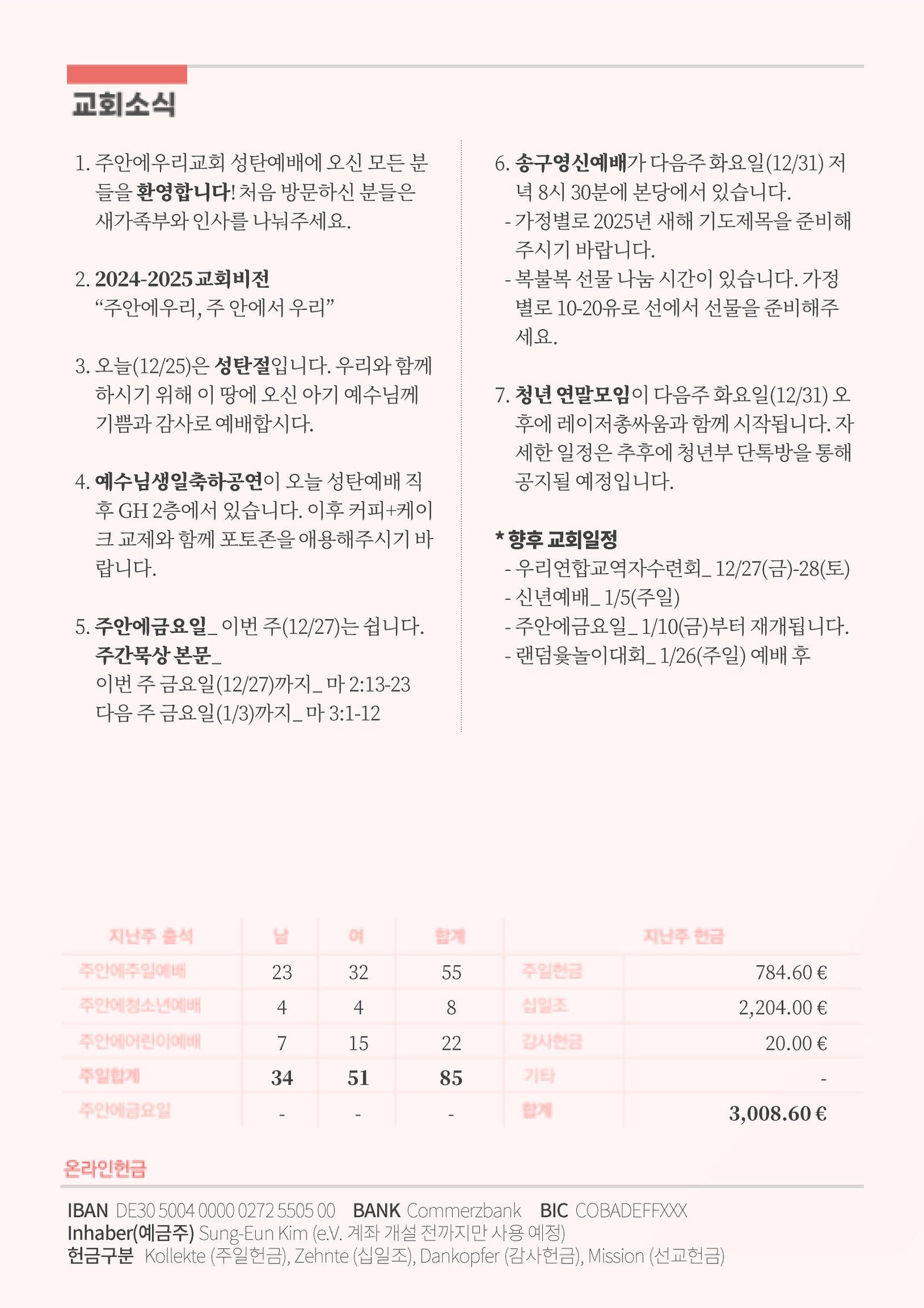 - 가정별로 2025년 새해 기도제목을 준비해주시기 바랍니다.