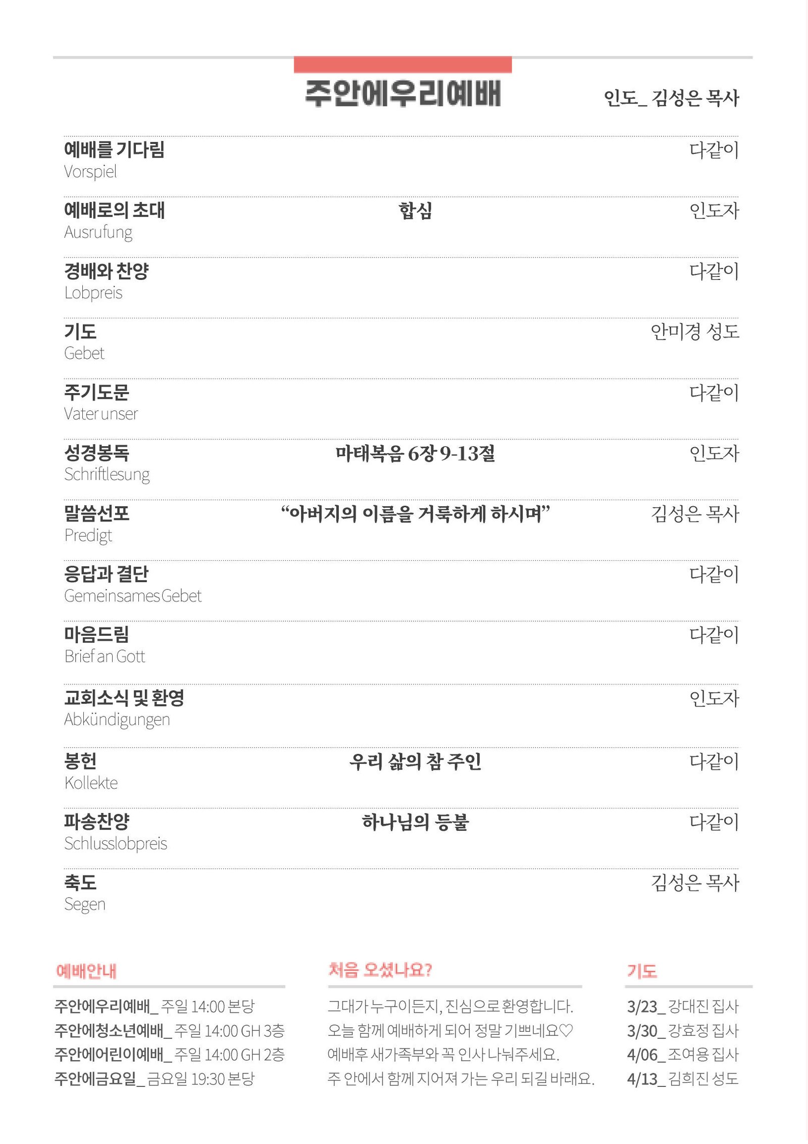 3. 오늘(3/16)은 사순절 둘째 주일입니다. 우리를 위한 예수 그리스도의 고난과 사랑을 기억하는 사순절 되시기 바랍니다.