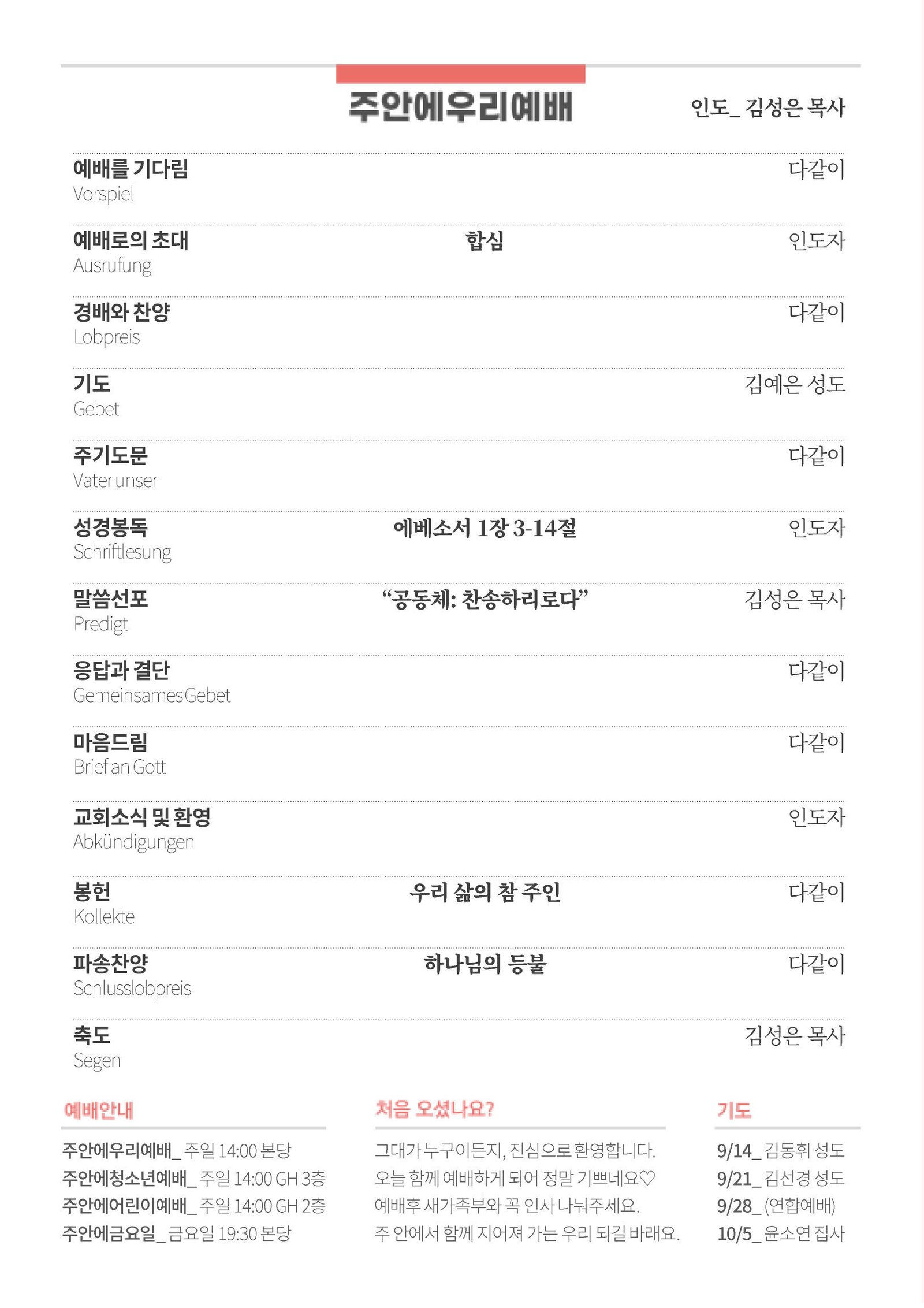 - Erntedankfest_ 10/5(주일)