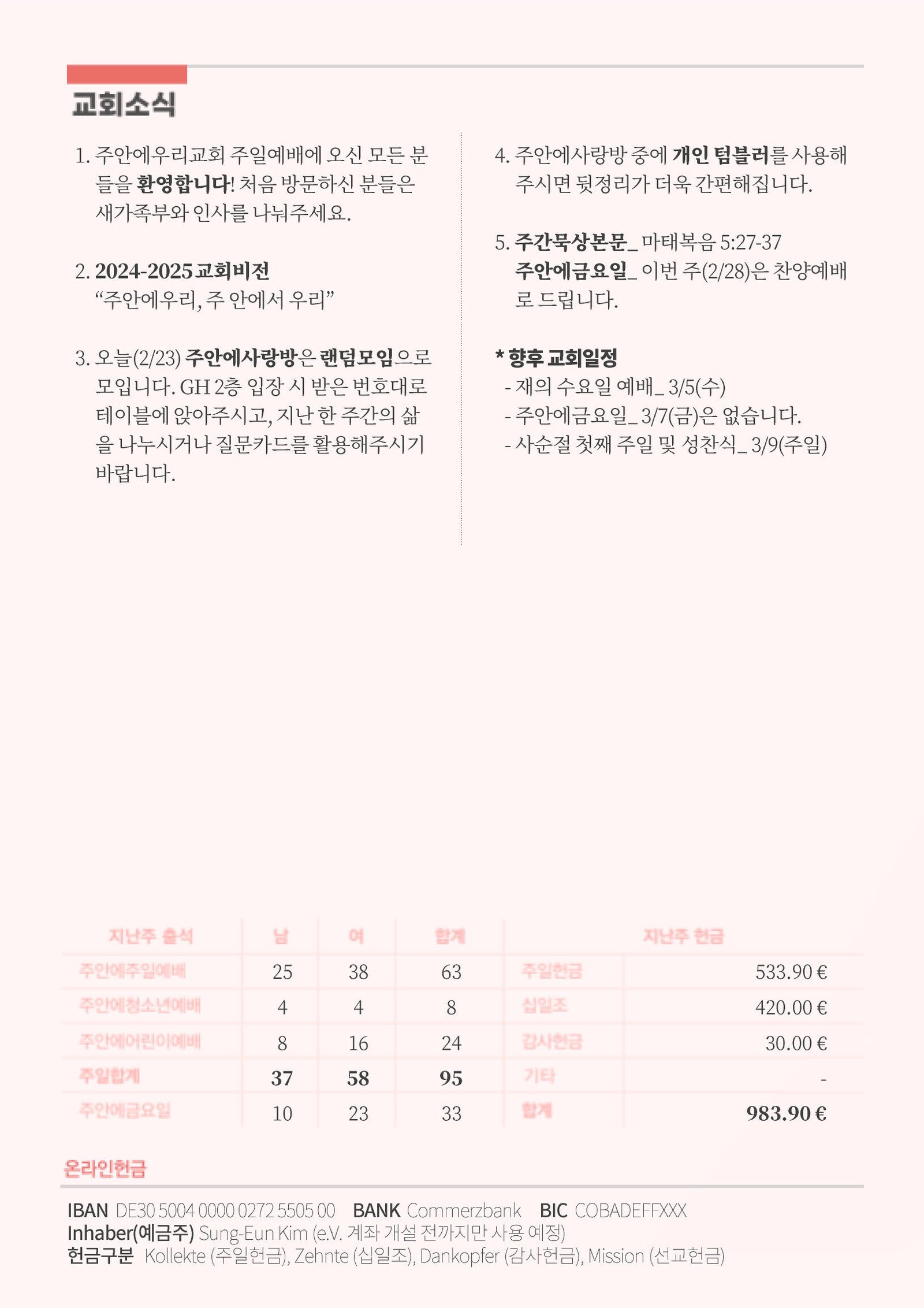 - 주안에금요일_ 3/7(금)은 없습니다.